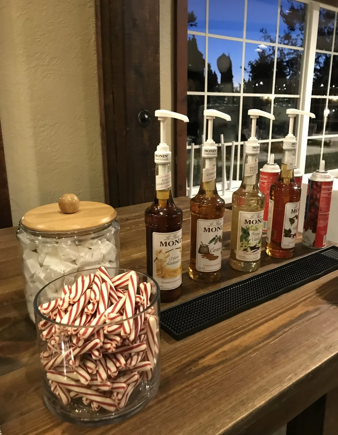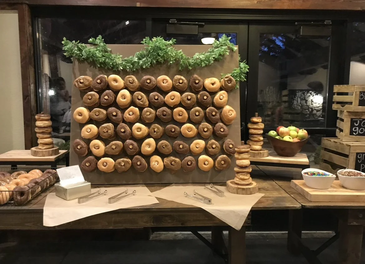 Donut wallCHURRO BARSOCIAL HOUR HORSD’OEUVRESWAFFLE BAR Smore BarCHARCUTERIE GRAZING TABLeHot chocolate barPRETZLE STATIONCARAMEL APPLE BAR+ MORE….